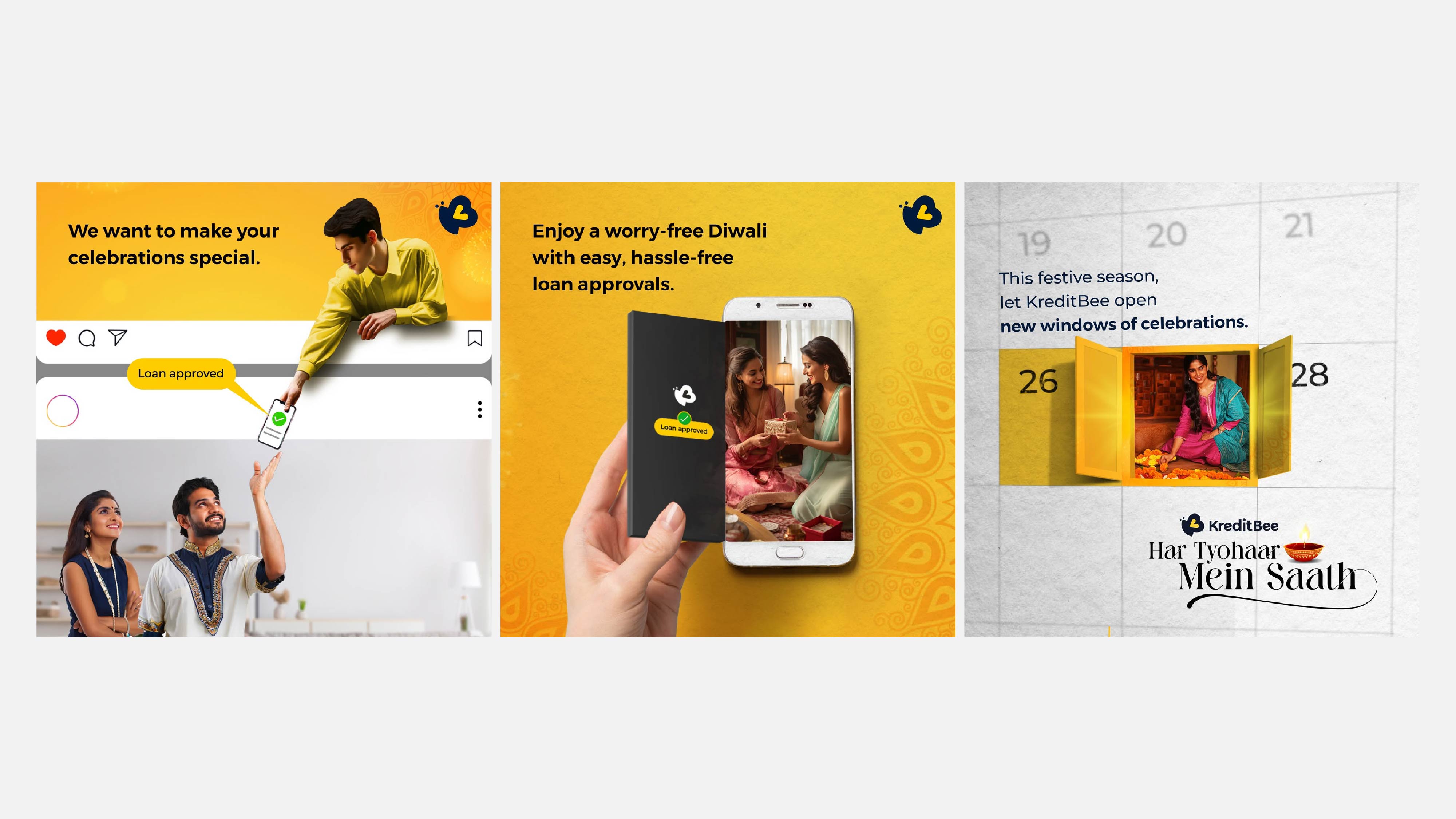 For the festive season, KreditBee launched #HarTyohaarMeinSaath, a campaign celebrating the unique, personal ways people create joy during the Festival of Lights. Instead of focusing on grand celebrations, the film highlights the small, intimate, and heartfelt moments that make the season truly special. From thoughtful gifting to last-minute preparations, the story positions KreditBee as a supportive partner, quietly enabling people to celebrate in their own style, at their own pace, with confidence and ease. To amplify the idea, we extended the campaign across social media with vibrant, festive creatives that echoed the message of individuality and togetherness. Each post reinforced KreditBee’s role in helping people bring their festive plans to life, no matter how big or small. The result was a warm, relatable campaign that connected emotionally with audiences and strengthened KreditBee’s presence during one of India’s most celebratory seasons.