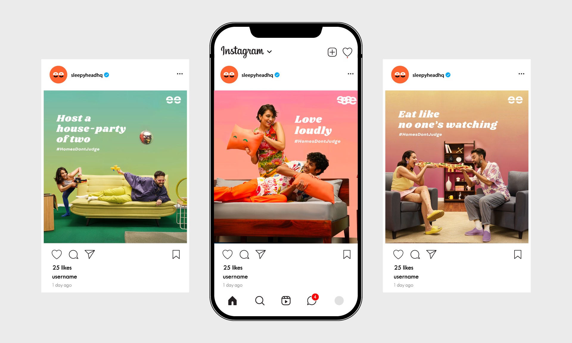 AS SLEEPYHEAD EXPANDED FROM MATTRESSES TO FURNITURE, WE SET OUT TO BRING THEIR VIBRANT, QUIRKY SPIRIT INTO EVERY CORNER OF THE HOME. #HOMESDONTJUDGE CELEBRATES SPACES THAT WELCOME YOU AS YOU ARE, BOLD, MESSY, REAL. A CAMPAIGN THAT REDEFINES COMFORT WITH COLOR, CHARACTER, AND CONFIDENCE.