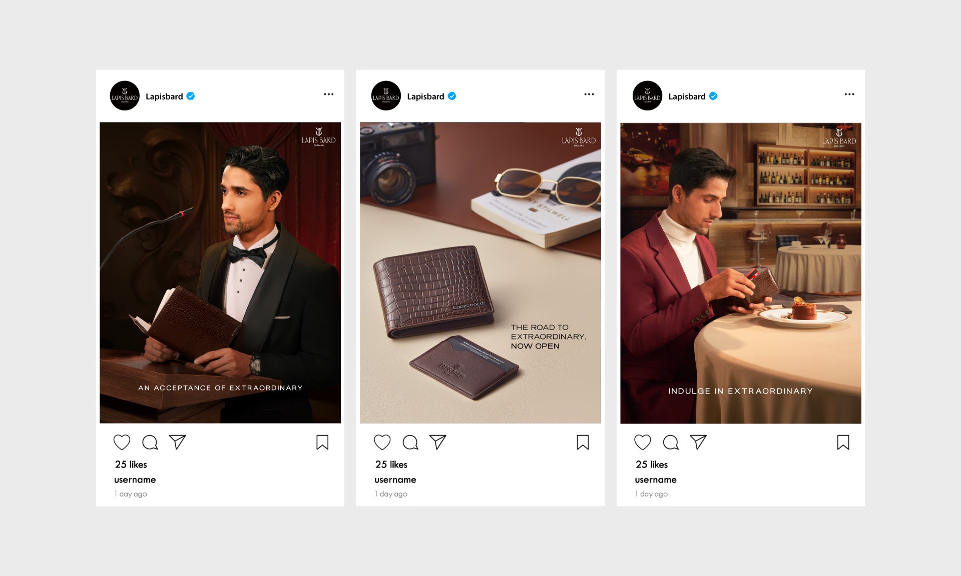 FOR THE LAUNCH OF THE MANDEVILLE COLLECTION, WE BUILT A NARRATIVE THAT MATCHED THE CRAFTSMANSHIP AND CHARACTER OF LAPIS BARD’S FULL-GRAIN, RESPONSIBLY SOURCED LEATHER RANGE. WITH ITS SIGNATURE CROCO TEXTURE AND TIMELESS FINISH, THE COLLECTION WAS POSITIONED FOR THE MODERN CONSUMER WHO VALUES DURABILITY, REFINEMENT, AND OBJECTS THAT GROW MORE MEANINGFUL WITH TIME. OUR IDEA, SEEK EXTRAORDINARY, CELEBRATED THIS MINDSET. A LIFE WHERE EVEN EVERYDAY MOMENTS ARE ELEVATED THROUGH INTENTION AND TASTE. THE CAMPAIGN INTRODUCED THE WORLD OF THE “MANDEVILLE MAN,” SOMEONE WHO BRINGS A SENSE OF DISTINCTION TO WORK, LEISURE, AND EVERYTHING IN BETWEEN. THROUGH A PREMIUM HERO FILM, COHESIVE VISUAL LANGUAGE, AND SOCIAL EXTENSIONS, WE SHOWCASED EACH PRODUCT AS A COMPANION BUILT FOR REMARKABLE LIVING. ELEGANT, CONFIDENT, AND UNDERSTATED, THE LAUNCH POSITIONED MANDEVILLE NOT JUST AS A COLLECTION, BUT AS A SYMBOL OF HOW EXTRAORDINARY LIVING BEGINS WITH THE THINGS YOU CHOOSE TO CARRY.