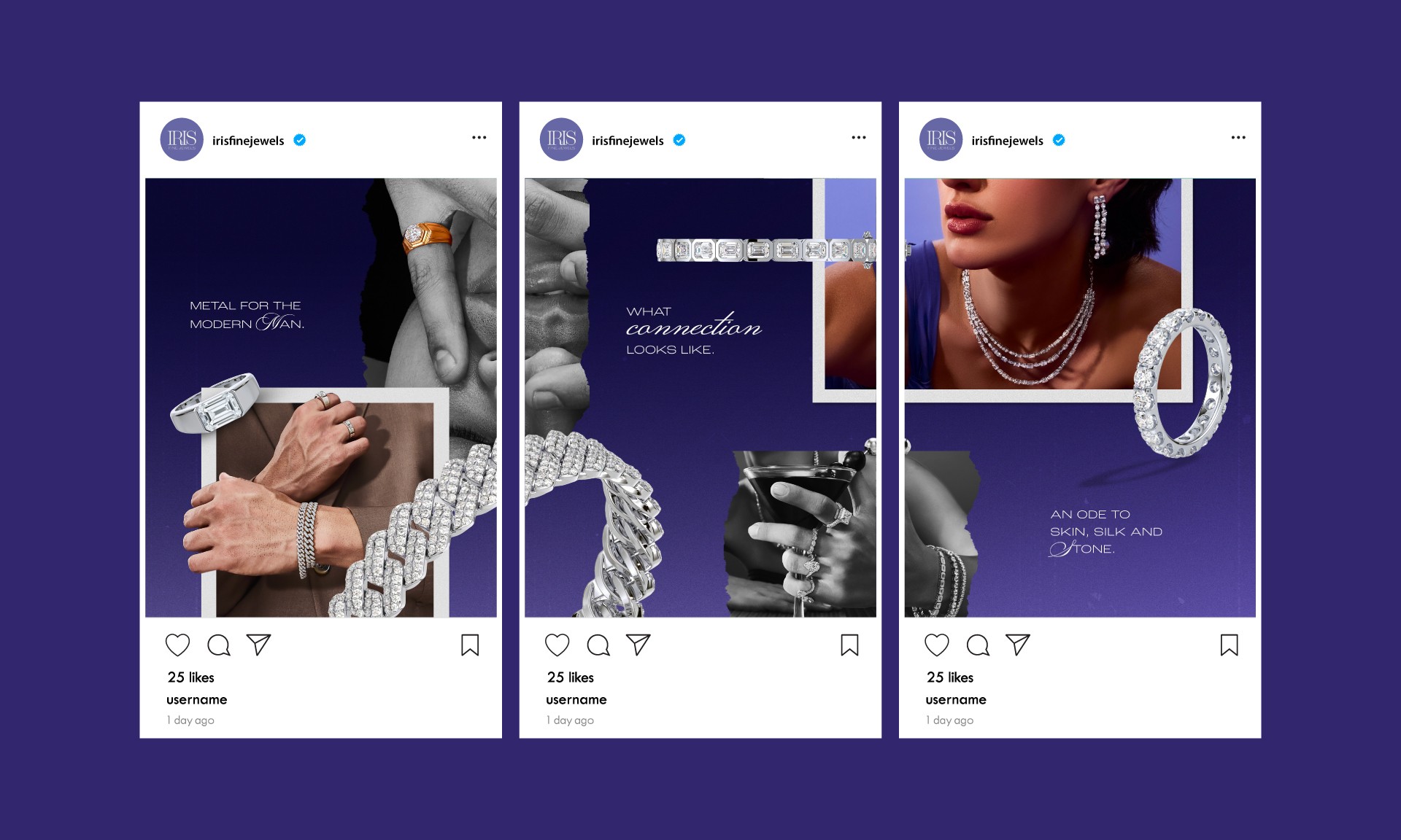 We were tasked with redefining Iris’s positioning and enhancing its overall presence through a refreshed tone of voice, visual identity, and photo/video style. What follows is the concept we presented to the client, which received approval and was implemented over the following months. IRIS Fine Jewels is a modern brand that fuses heritage craftsmanship with contemporary design. Rooted in timeless artistry, IRIS crafts refined, customizable pieces using ethically sourced or lab-grown diamonds. With a focus on sustainability, precision, and self-expression, the brand embraces the bold energy of hip-hop culture, reimagining fine jewellery through a fresh, modern lens that celebrates individuality and a new era of conscious luxury.