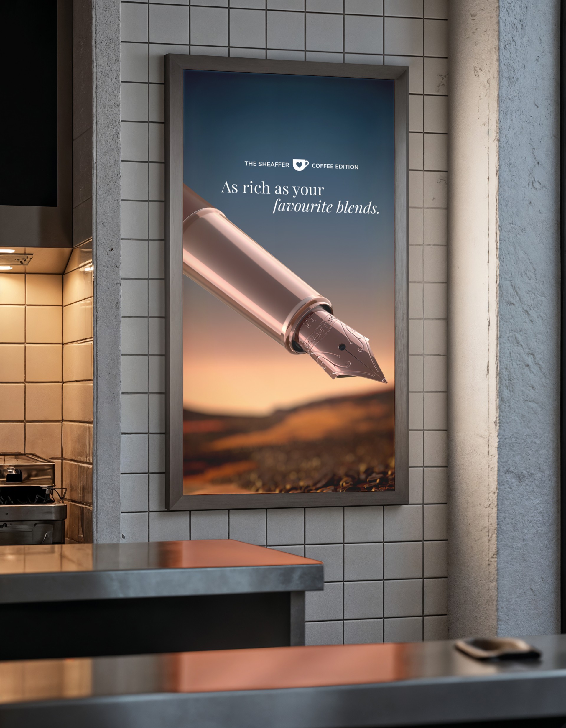 Sheaffer – Coffee Collection Launch For Sheaffer’s Coffee Collection, we set out to create a poetic, coffee-inspired world, where everything from visuals to tone echoed the warmth of a fresh brew. The campaign celebrated the timeless bond between coffee and writing, blending Sheaffer’s elegance with rich, sensory storytelling. Through immersive imagery, tactile packaging, and a film that brought this world to life, we told the eternal love story of coffee and writing. Anchored by the lines #FreshlyBrewed and #WriteKindOfCoffee, this became one of Sheaffer’s most successful recent launches.